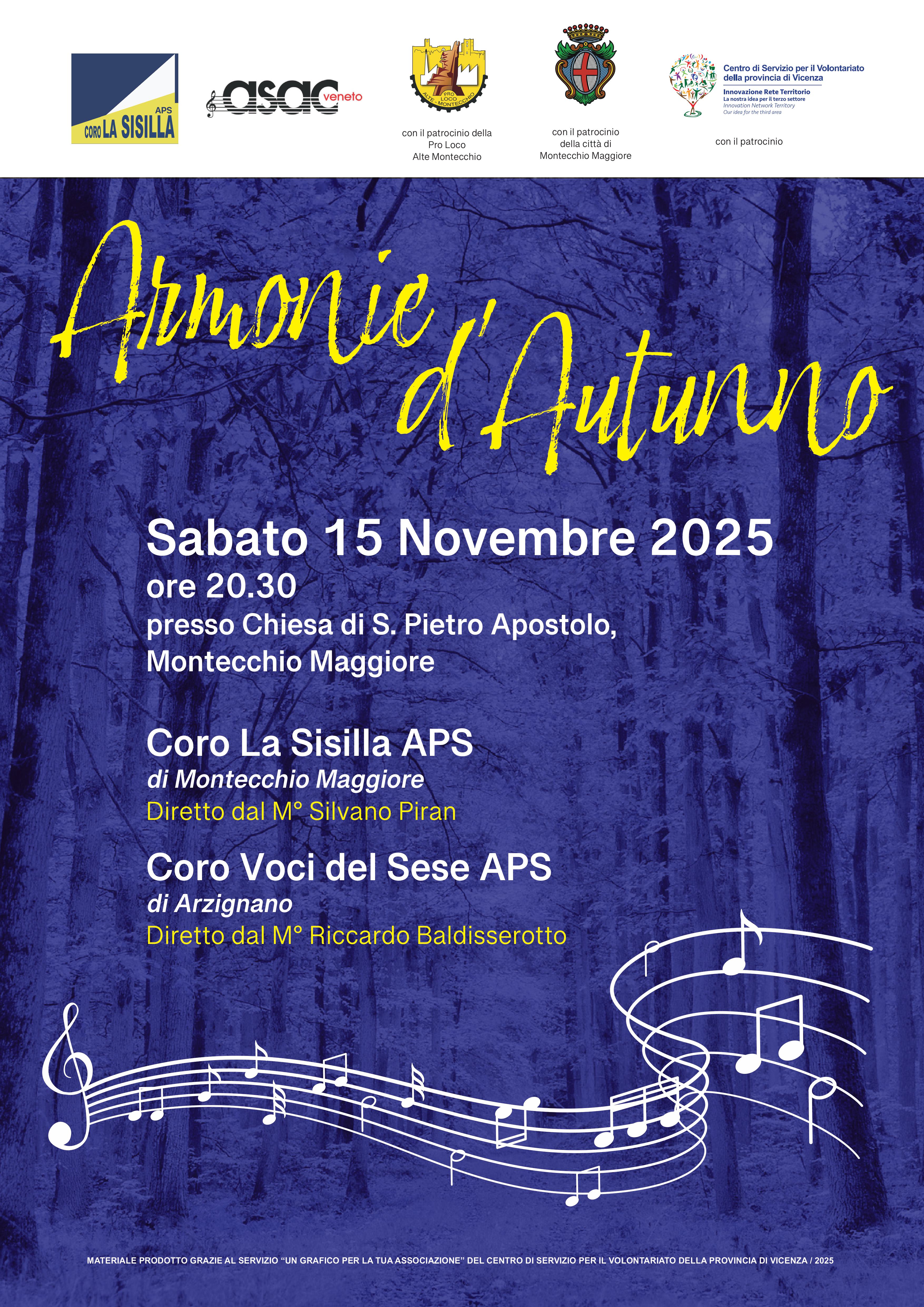 Concerto del Coro La Sisilla di Montecchio Maggiore, diretto dal M° Silvano Piran, e del Coro Voci del Sese di Arzignano, diretto dal M° Riccardo Baldisserotto.