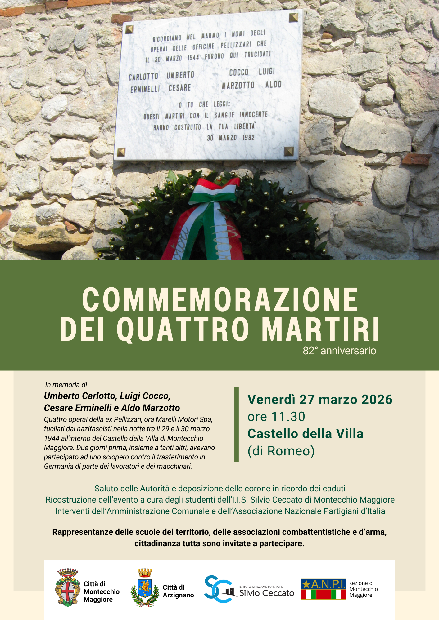 Commemorazione dei 4 martiri trucidati dai nazifascisti nel 1944 al Castello della Villa di Montecchio Maggiore