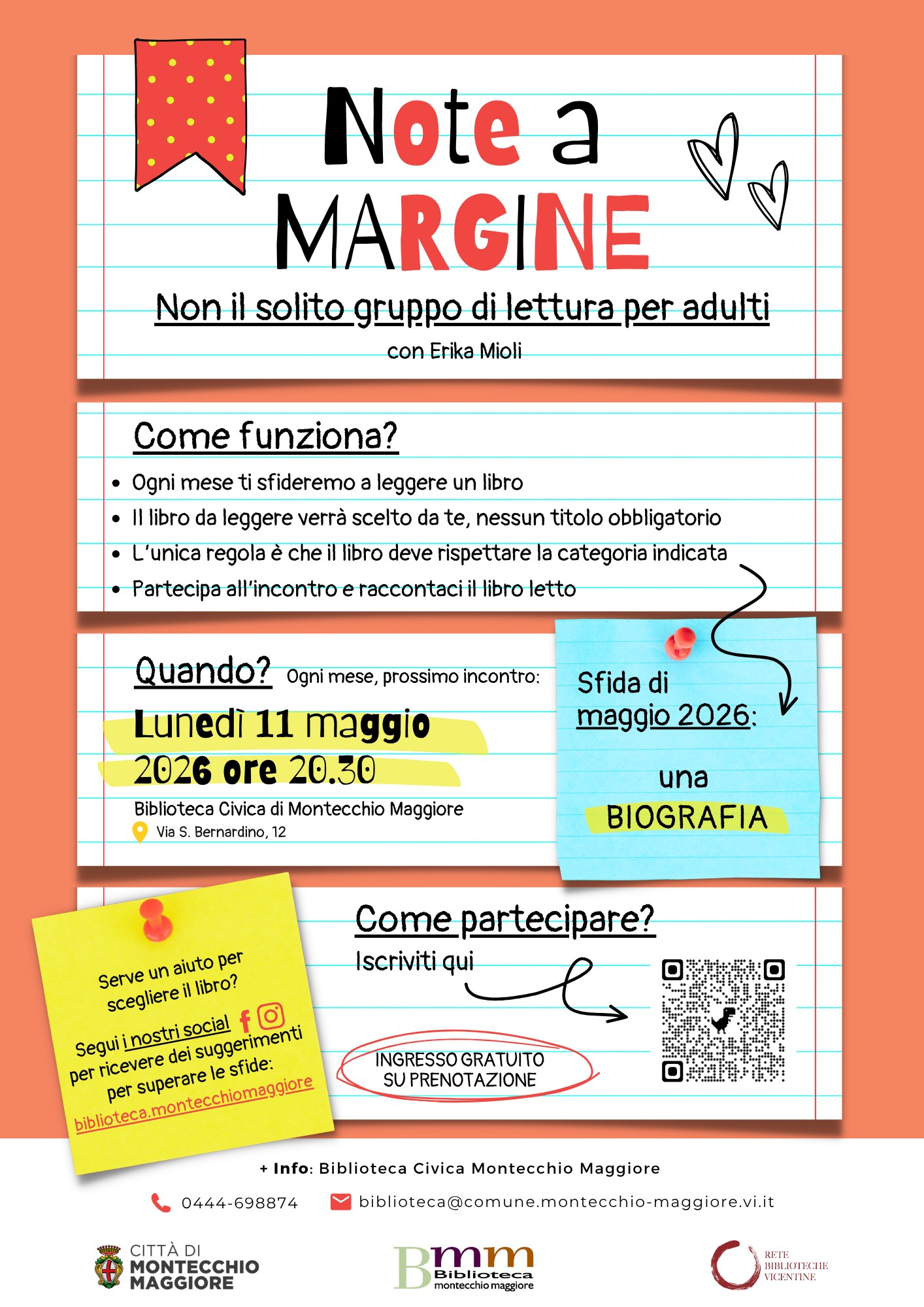 Durante l'incontro mensile del gruppo di lettura Note a margine potrai raccontare il libro da te scelto rispettando la categoria della sfida mensile.