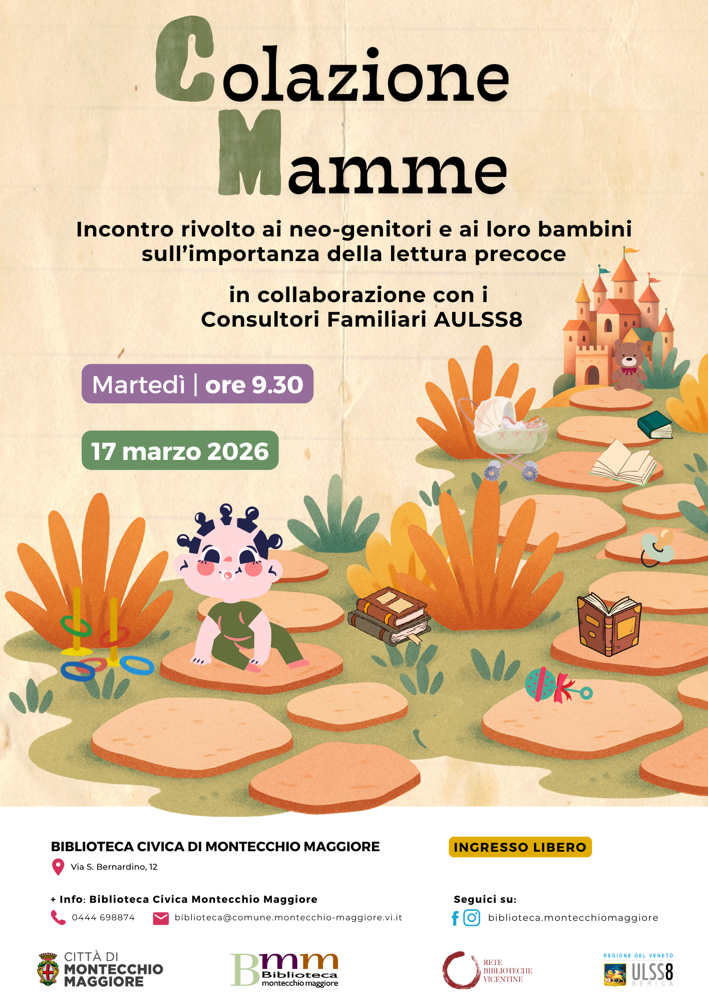 COLAZIONE MAMME vuole essere uno spazio dedicato ai neo-genitori e ai loro bambini, con un focus speciale sull'importanza della lettura precoce. Un'occasione preziosa per confrontarsi, condividere tempo di qualità e crescere insieme.