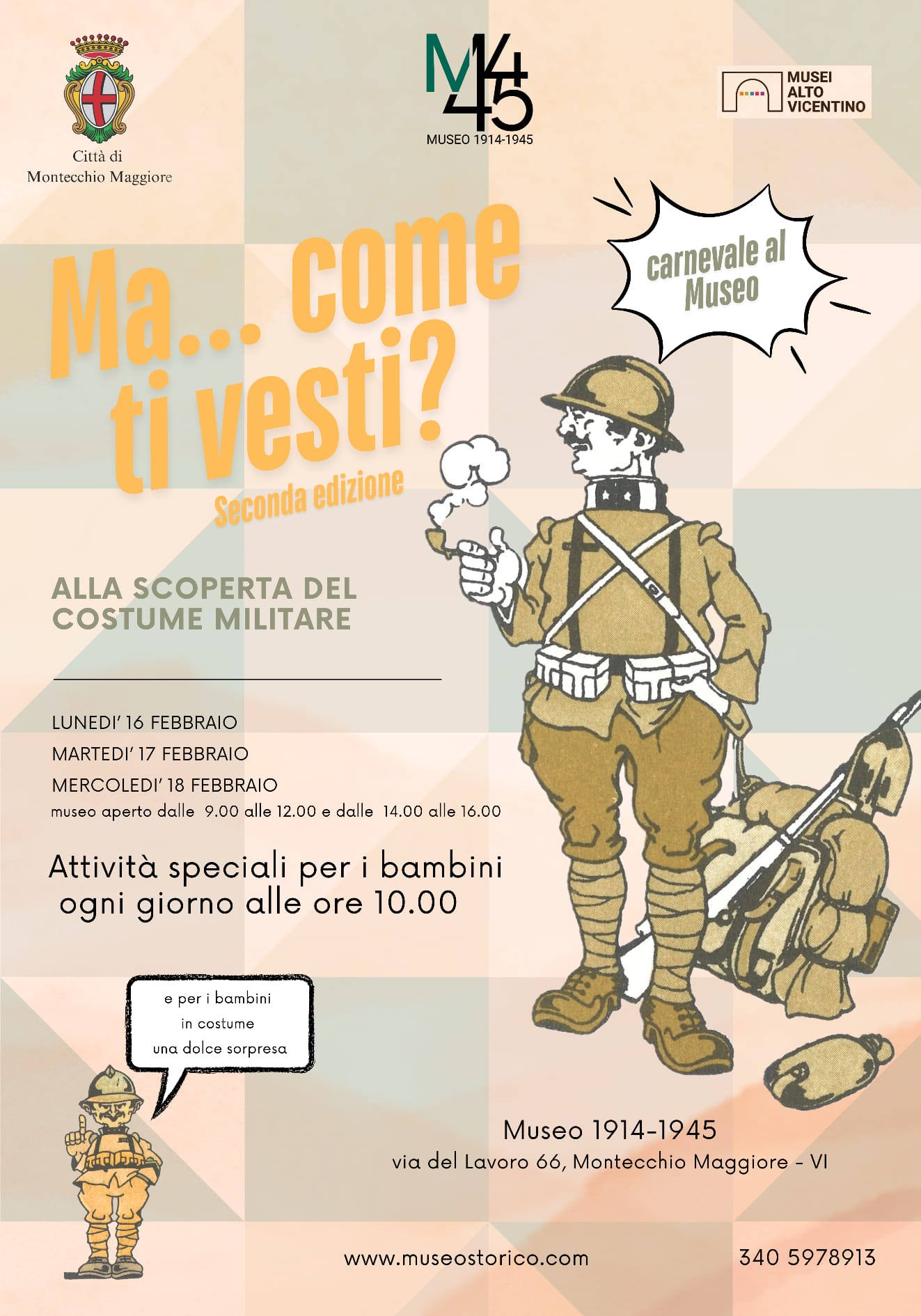 Come lo scorso anno, torna al Museo 1914-1945 l’appuntamento con “Ma come ti vesti?”, l’iniziativa dedicata a tutti per scoprire il “costume militare” tra la fine dell’Ottocento e la prima metà del Novecento.
