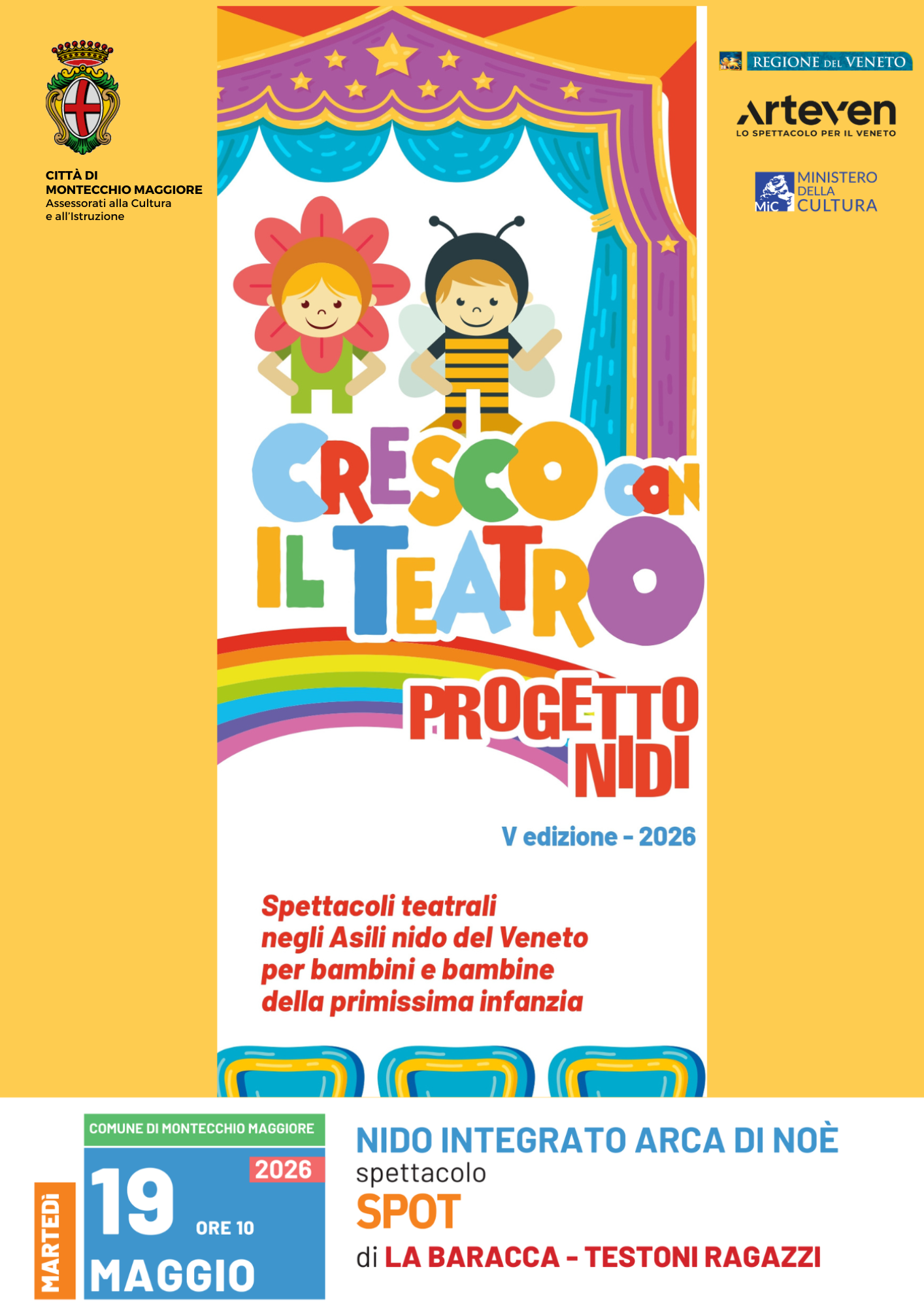 Gli Assessorati alla Pubblica Istruzione e alla Cultura della Città di Montecchio Maggiore rinnovano e ampliano la proposta dedicata alla primissima infanzia, dal titolo Progetto Nidi: il teatro per i più piccoli, portando palcoscenico e recitazione direttamente all’interno degli asili nido del territorio.